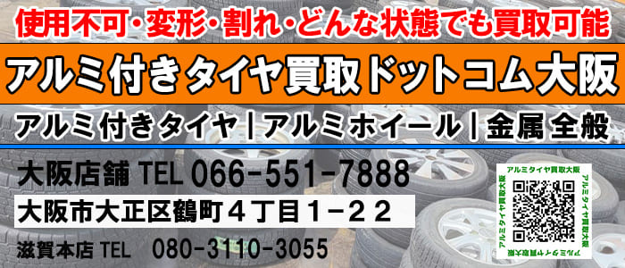 ”大阪でアルミ付きタイヤやアルミホイールを状態問わず、年式問わず、山無し溝なし、1本から買取保証しています。一般のお客様や個人様もお気軽にお持込みください。”